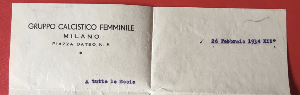 Sin dalla sua fondazione nel febbraio del 1933, il Gruppo Femminile Calcistico ebbe la propria sede a Milano, in via Stoppani 12, ospitato nei locali della Ditta Cardosi, e coincidente di fatto con l’ufficio di una delle impiegate del titolare Ugo Cardosi, ossia la calciatrice Losanna Strigaro.