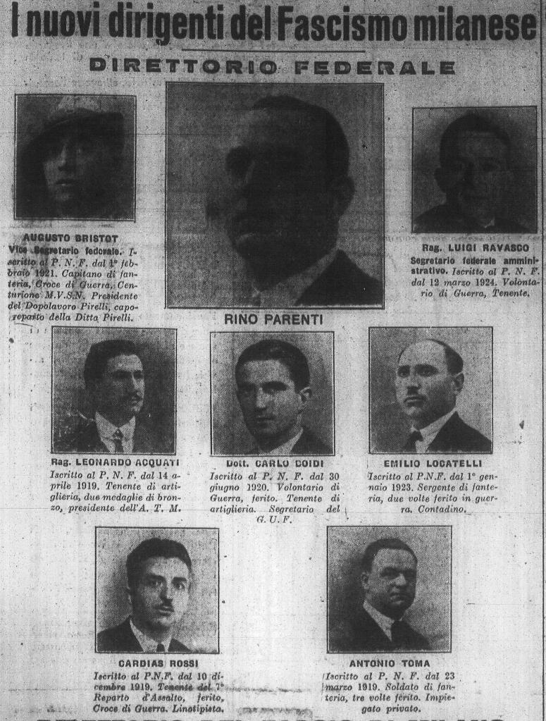 Responsabile dell’Ufficio Sportivo della Federazione del Fascio di Milano fino al 1933 (per la sua biografia, vd. la voce a lui dedicata nei Materiali GFC).