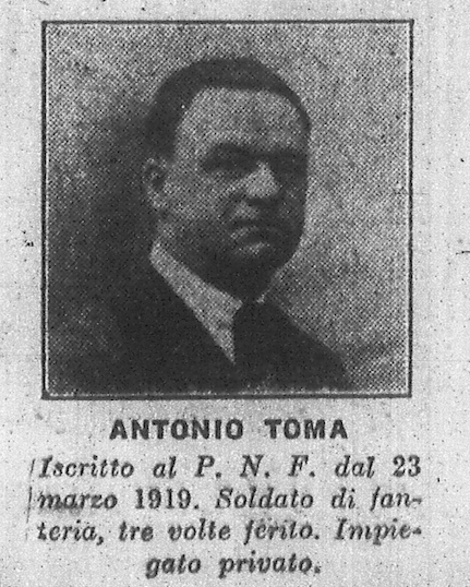 La nomina di Toma va letta politicamente all’interno del più generale spoil system che nell’estate del 1933 colpì il fascismo milanese, quando la carica di Segretario Federale passò da Brusa a Rino Parenti (in precedenza responsabile dei Dopolavoro):
