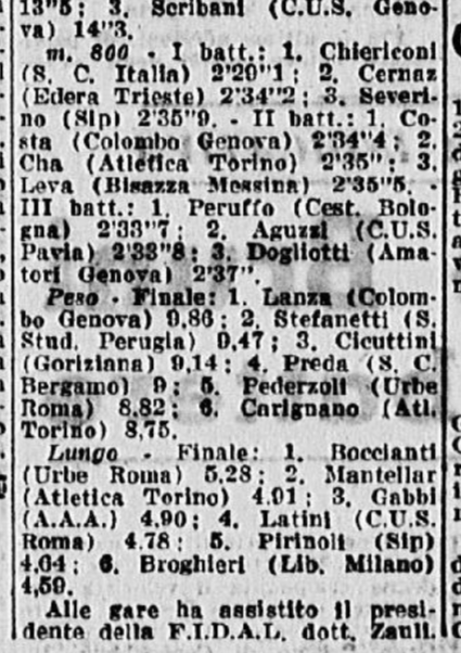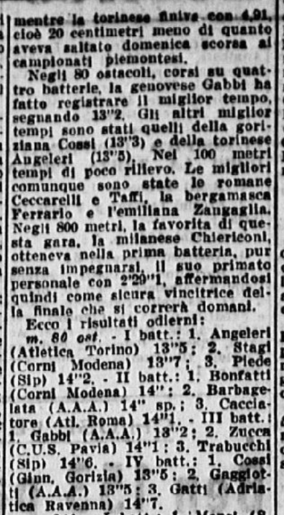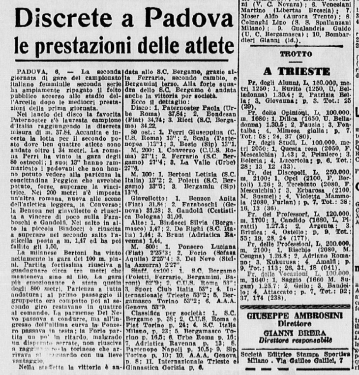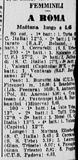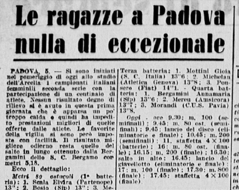 Nell’edizione del giorno successivo (il 19 settembre 1955), La Gazzetta dello Sport purtroppo pubblicò solo i risultati delle gare maschili, e non di quelle femminili …