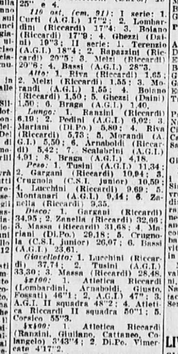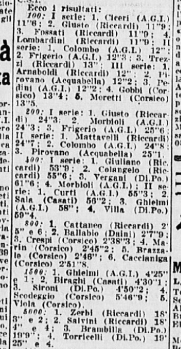 Lunedì la Gazzetta non riporta alcun risultato, ma lo fa qualche giorno dopo (#18). Purtroppo, però, si tratta solo di risultati apparentemente maschili, e la GS Libertas non è mai citata: non è comunque da escludere a priori che si siano disputate anche delle gare femminili.