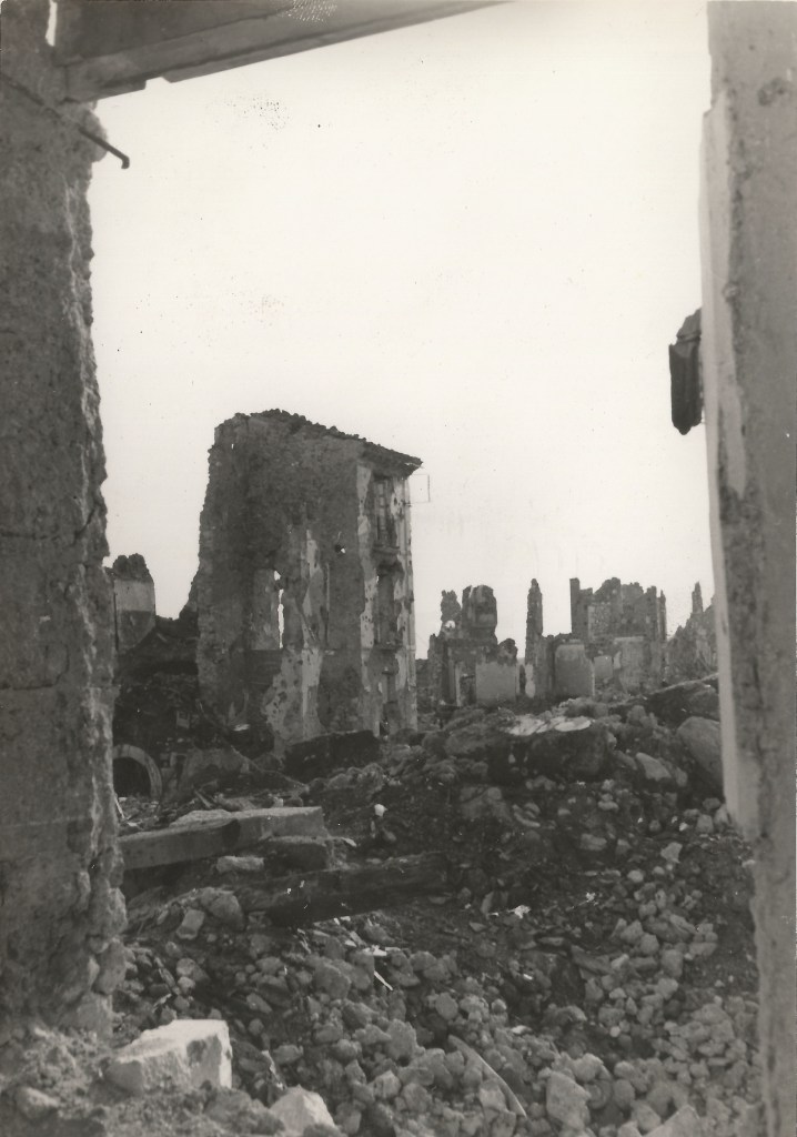 Nell’archivio privato di Giovanna Boccalini Barcellona è presente una busta bianca, con la scritta Pro Cassino, contenente numerosi scatti (di cui non conosciamo l’autore/trice) che costituiscono una preziosa testimonianza di uno dei teatri più cruenti della Campagna d’Italia, svoltasi durante la Seconda Guerra Mondiale.