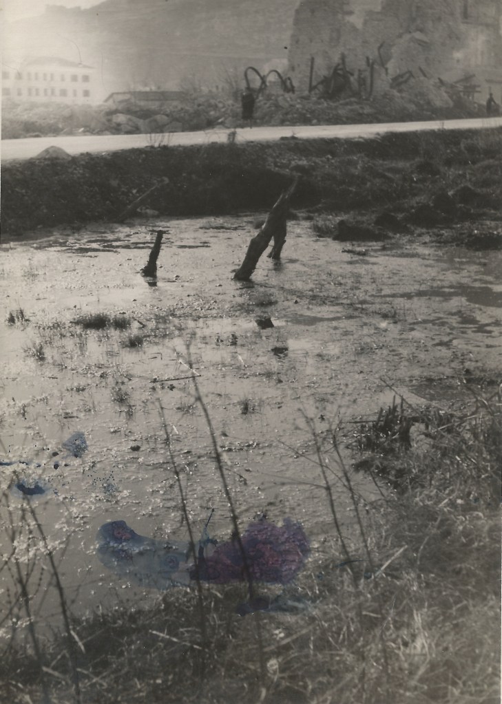 A rendere ancora più disperate le condizioni delle/dei piccole/i di Cassino contribuì la diffusione della malaria, vero e proprio flagello anche per l’esercito americano che non mancò di sperimentare il dicloro-difenil-tricloroetan (meglio noto come DDT) per tentare di debellare la malattia. Le seguenti foto sono testimonianza dell’ambiente acquitrinoso e paludoso che nel Cassinate era risultato favorevole alla diffusione della malaria tanto da portare gli americani a segnalare la zona come altamente pericolosa per il contagio.