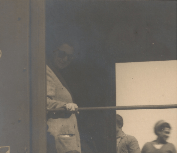 Nell’immagine seguente si intravede a sinistra dell’immagine una donna con un lungo soprabito e occhiali scuri che accenna un sorriso: non è azzardato dire che si tratti proprio di Giovanna Boccalini Barcellona.