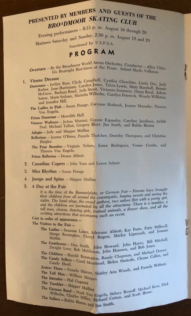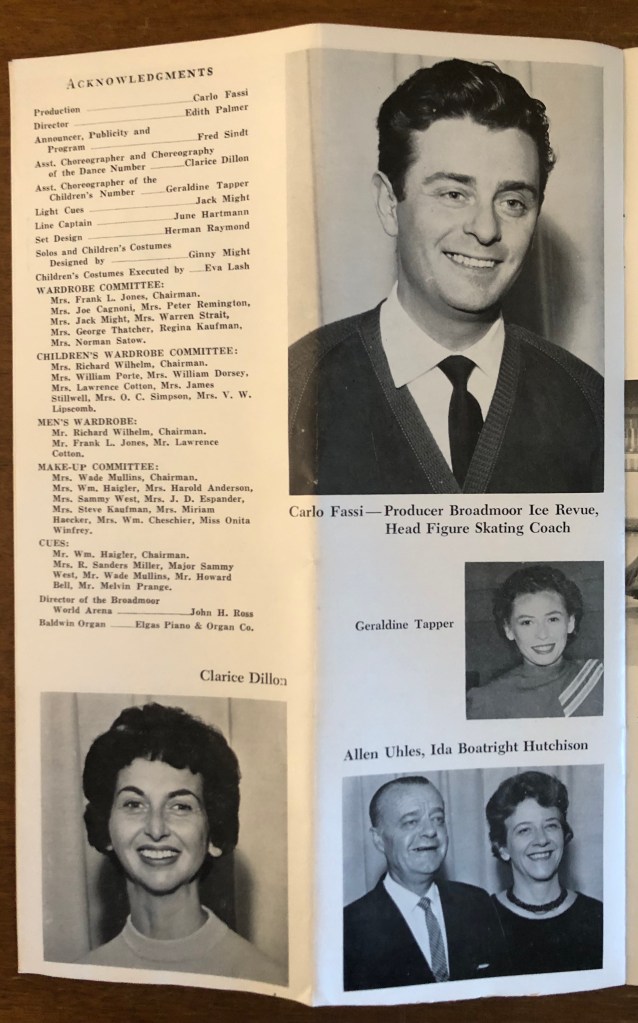 Assieme al programma di trova la pag. 61 del quotidiano statunitense The Denver Post il 17 agosto 1961, contenente un articolo sull’Ice Revue 1961, intitolato Amateur Entertainment Tops in Broadmoor Ice Revue: