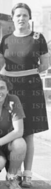 L’immenso patrimonio dell’Istituto Luce permette di trovare, fra le foto del Fondo Amoroso, uno scatto non datato né localizzato, che fa riferimento ad una squadra non identificata. Che si tratti delle cestiste dell’Ambrosiana nella formazione del 1936 è però evidente non solo dal confronto con la foto precedente (volti e numeri di maglia compresi), ma anche dal particolare della maglia nera col numero 8 indossata da Hervé Marconcini. Il luogo dovrebbe essere Napoli.
