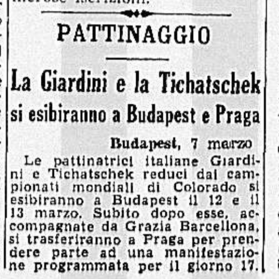 Nel marzo 1957 Grazia accompagna due pattinatrici (Emma Giardini e Karla Maria “Carla” Tichatscheck) a Praga e a Budapest, per delle gare.