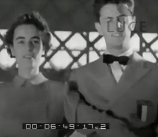 Dicembre 1951: assieme ad altri pattinatori e ai giocatori di Juventus e Torino, Grazia e Carlo inaugurano il Palazzetto del Ghiaccio di Torino, venendo immortalati in questo video: