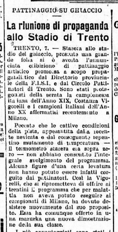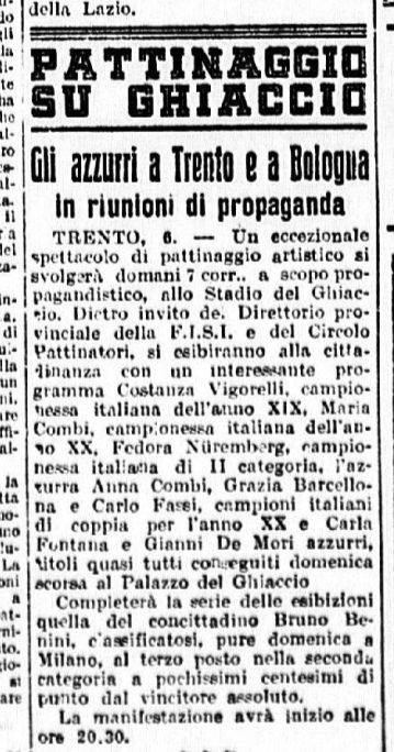 La sera di sabato 7 febbraio 1942 un gruppo di pattinatori milanesi, fra cui Grazia Barcellona, si esibì a Trento: