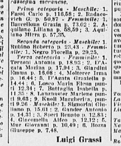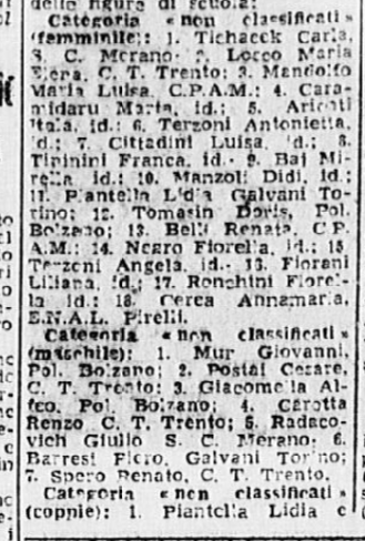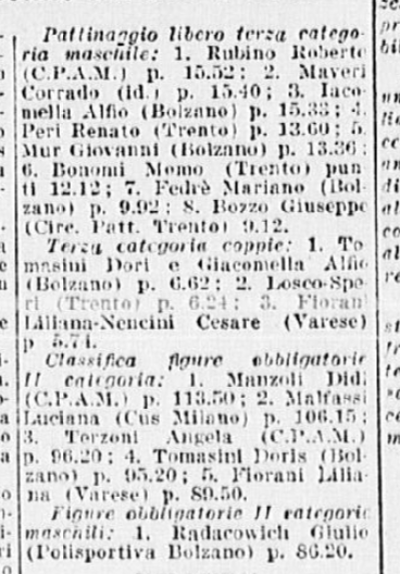 Grazia Barcellona e Carlo Fassi vinsero anche a Merano, come solito, le rispettive prime categorie, femminile e maschile: