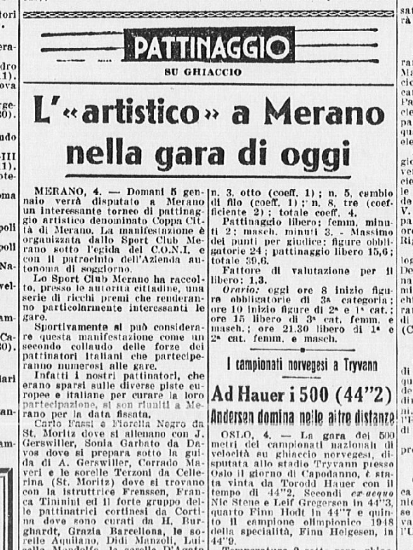 Il 5 gennaio 1952 si svolse a Merano la Coppa Città di Merano: