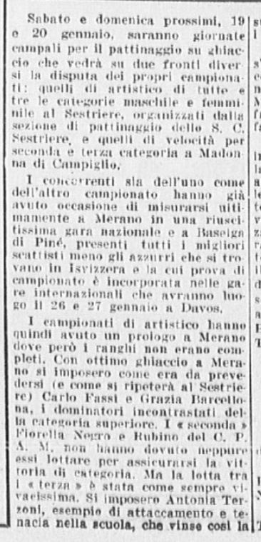 Il 19 e il 20 gennaio 1952, si svolgono al Sestriere i Campionati italiani assoluti di pattinaggio artistico: