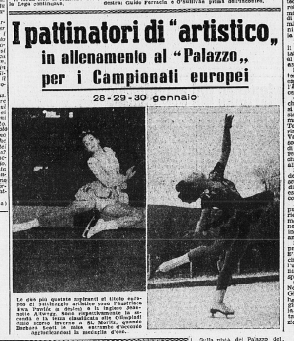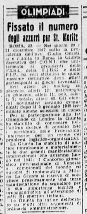 Nel dicembre 1947 si svolgono al Palazzetto del Ghiaccio di Milano le preolimpioniche, pensate per selezioni atleti e atlete da inviare alle imminenti Olimpiadi invernali di St. Moritz.