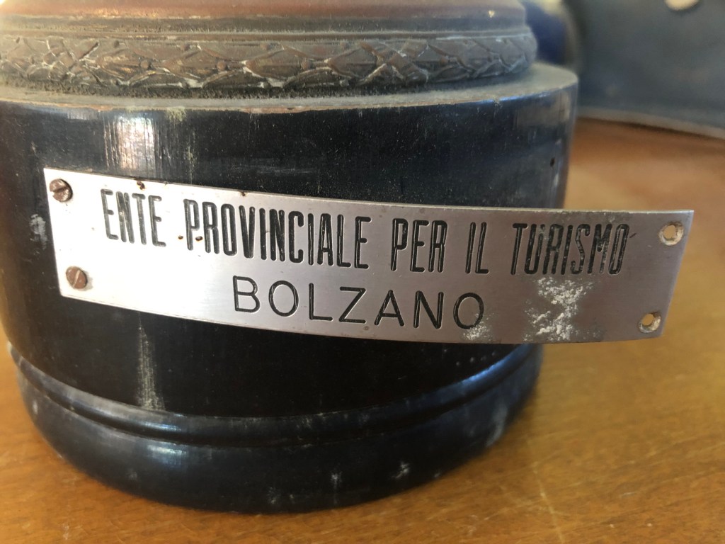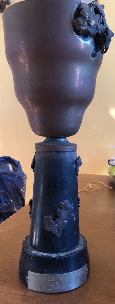 Il manufatto metallico (un premio? un ricordo?), molto pesante, riporta l’indicazione di luogo (“Cortina”), ma non quella cronologica.