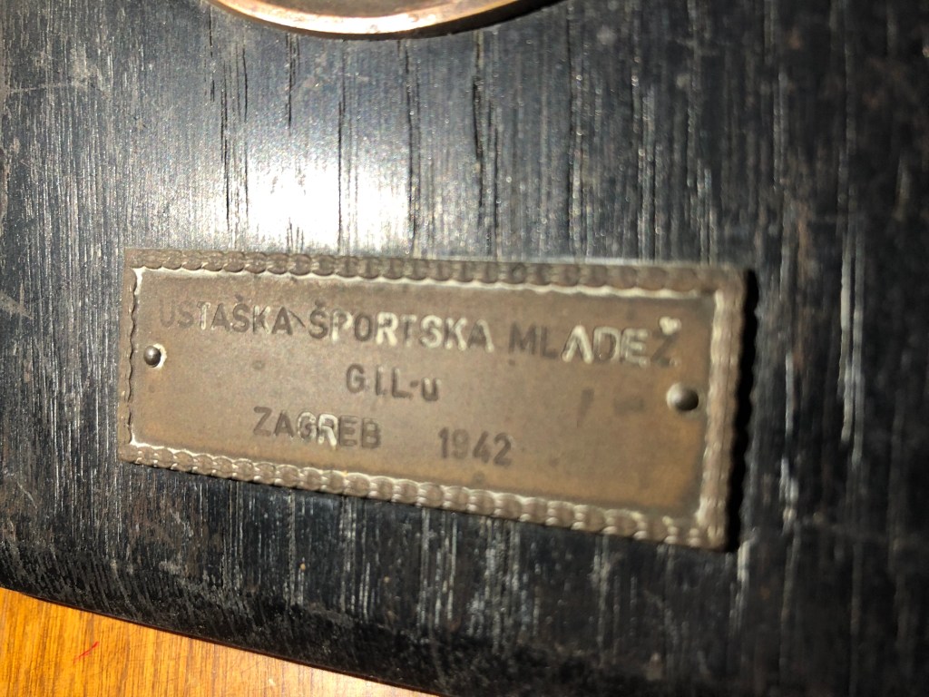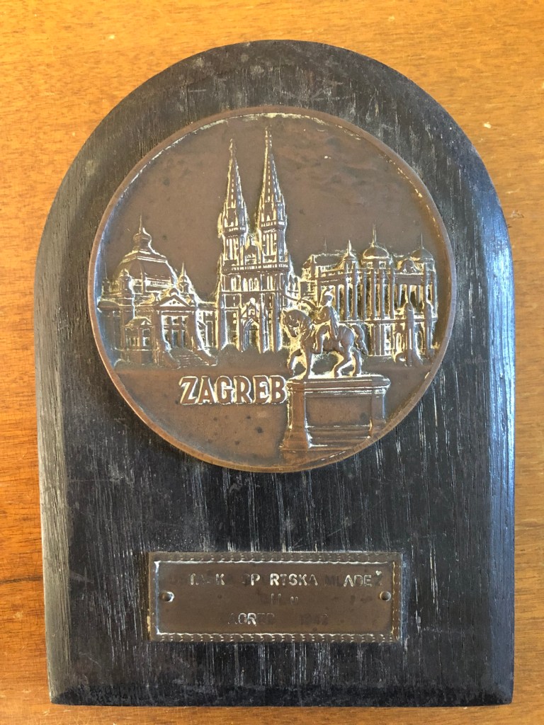 Il souvenir, donato a Grazia Barcellona in ricordo dell’esibizione con Carlo Fassi e gli altri pattinatori della GIL a Zagabria nel 1942, è composta da una base di legno, da un piatto metallico ritraente in bassorilievo le bellezze artistiche della città, e infine da una targa dove si ricorda la giornata di fratellanza sportiva fra la GIL fascista dell’Italia che allora, assieme alla Germania nazista, occupava la Jugoslavia, e la Gioventù Ustaše, cioè l’associazione giovanile del movimento filo-nazista degli Ustascia.