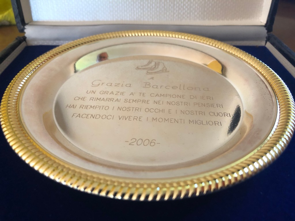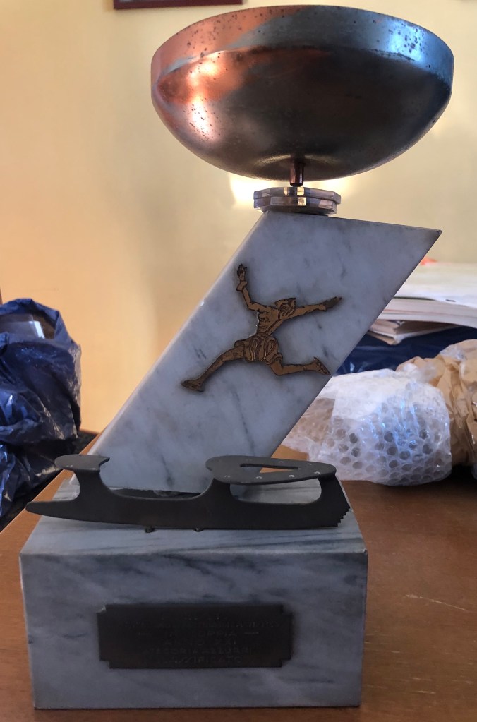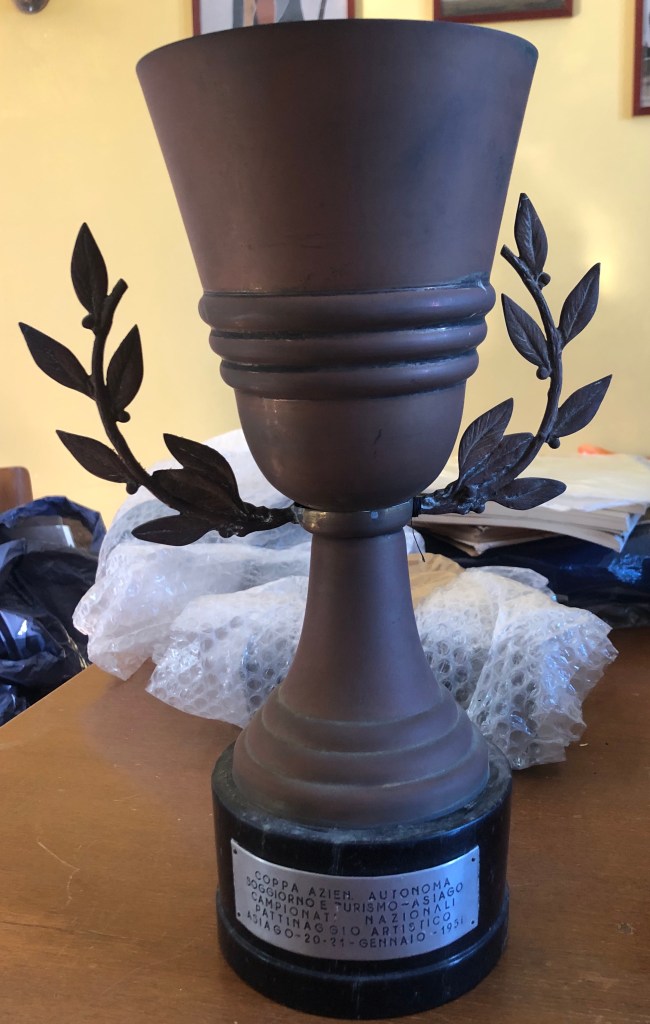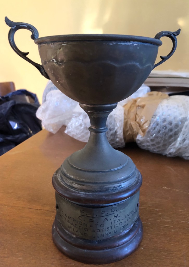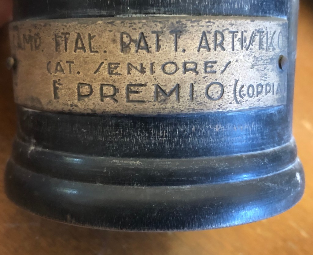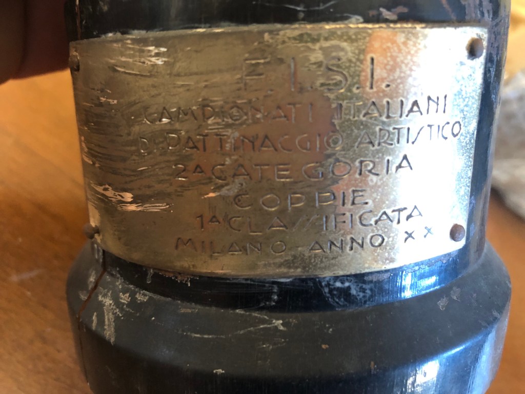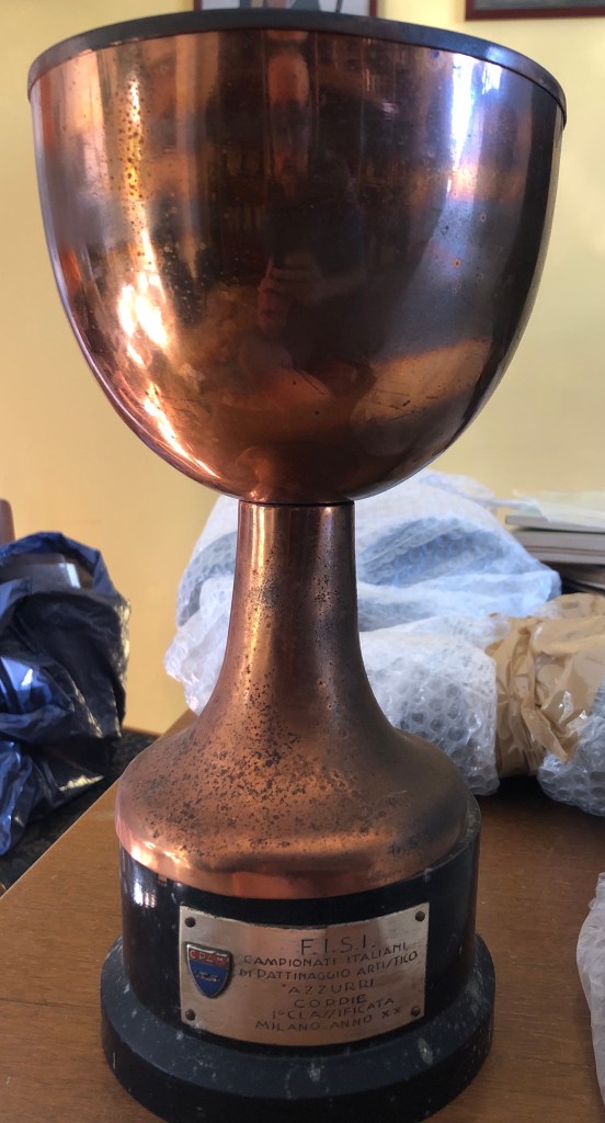 La coppa, di coppia, non è datata: è quella di uno dei tanti titoli nazionali di coppia vinti durante la carriera da Grazia Barcellona e da Carlo Fassi.