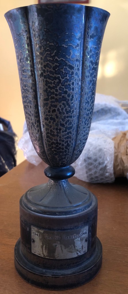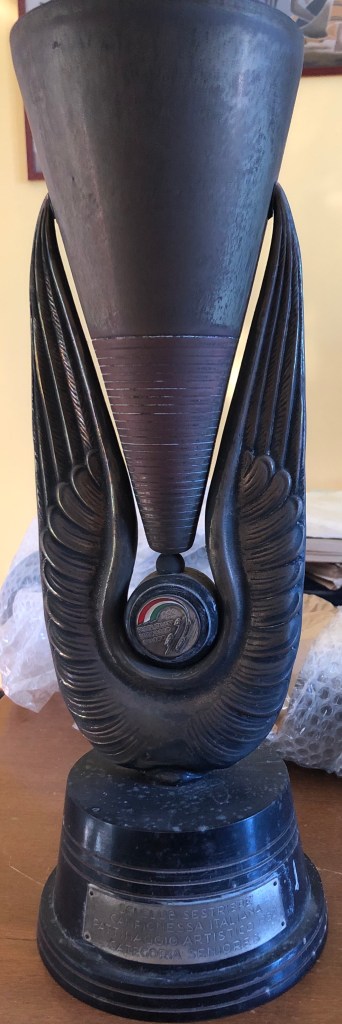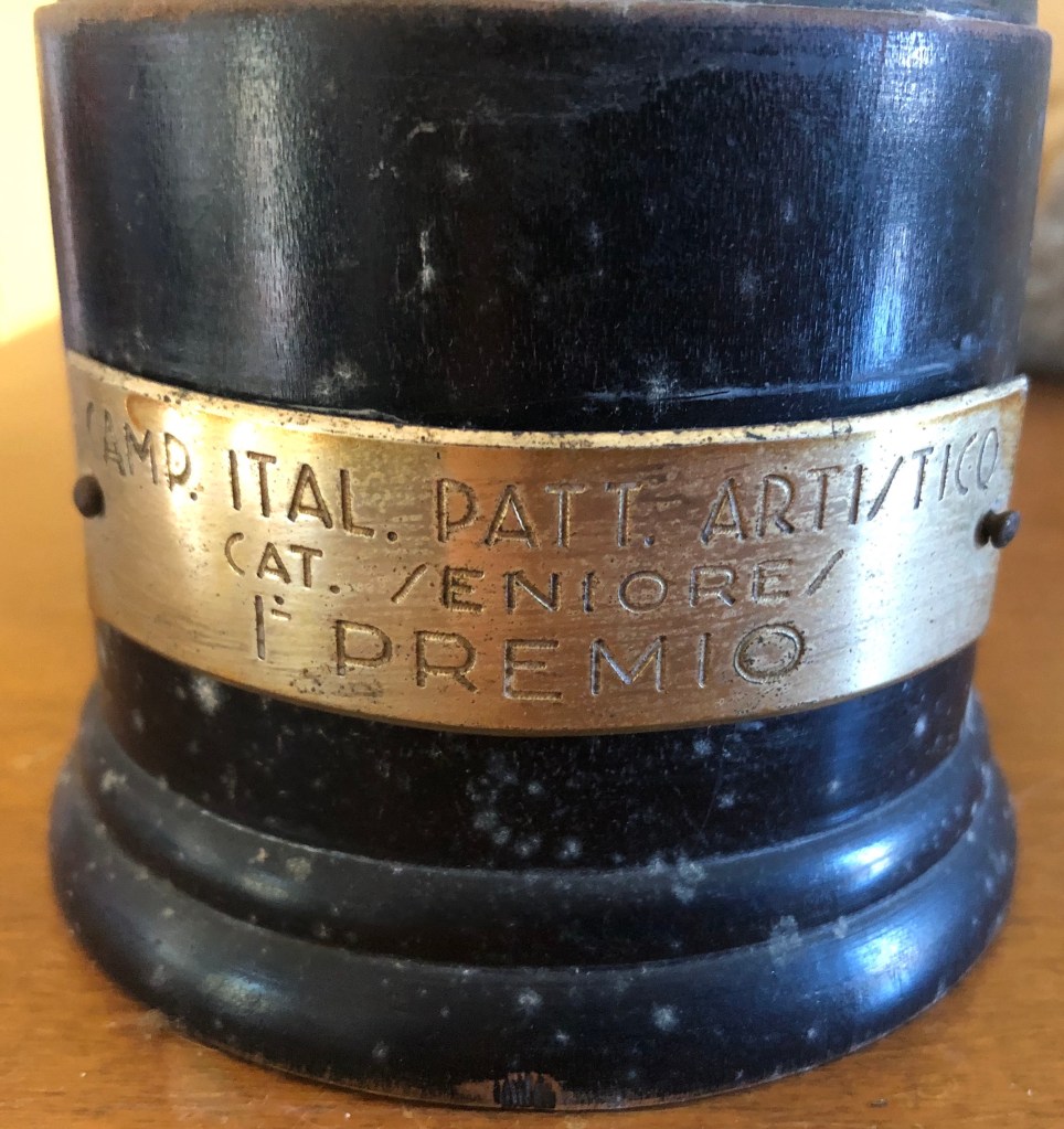 La coppa della gara a coppie dei Campionati Italiani di Milano 1943 risulta molto pesante, a causa della base in pietra: Grazia Barcellona la vinse insieme a Carlo Fassi.