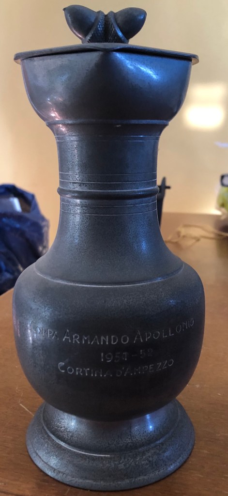 La coppa Armando Apollonio, vinta nel 1952 da Grazia Barcellona a Cortina nella I categoria, si caratterizza per l’asimmetria delle due anse.