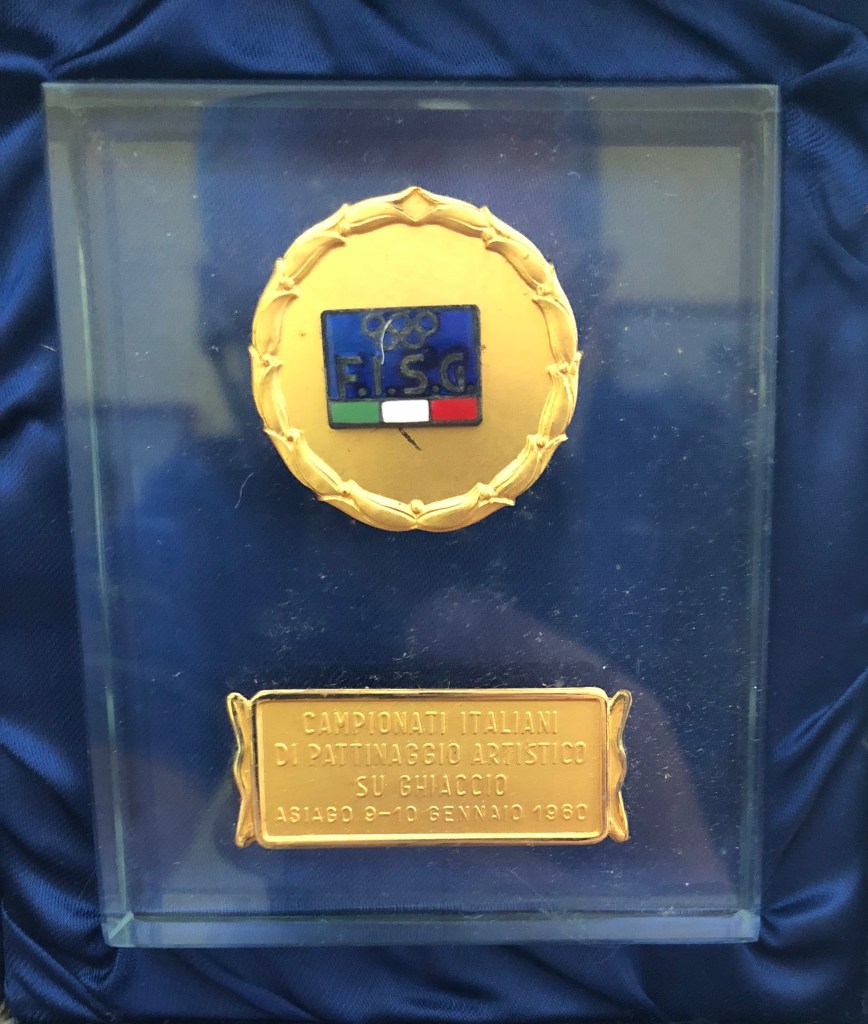 Nell’archivio si conserva la targa di partecipazione al Campionato nazionale assoluto di Asiago 1960, a cui Grazia deve aver partecipato come giudice o come organizzatrice.