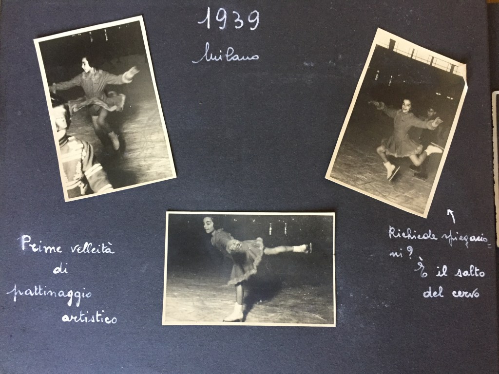Si passa subito ad un trio di fotografie del 1939, ambientate – come sempre, in questo primo album, tranne ove indicato, al Palazzo del Ghiaccio di Milano: il titolo è, significativamente, “prime velleità di pattinaggio artistico”.