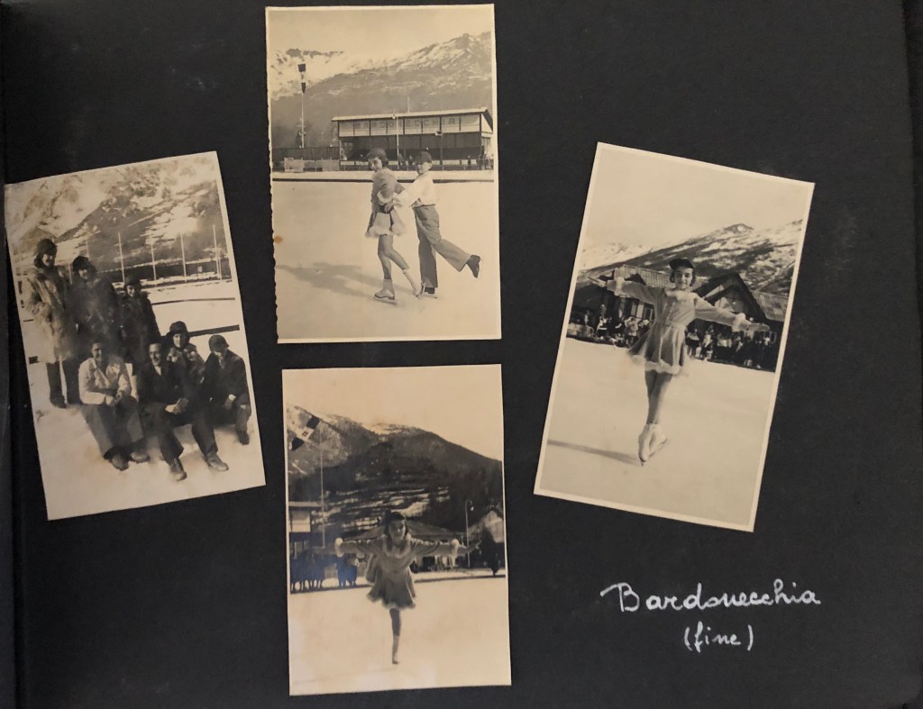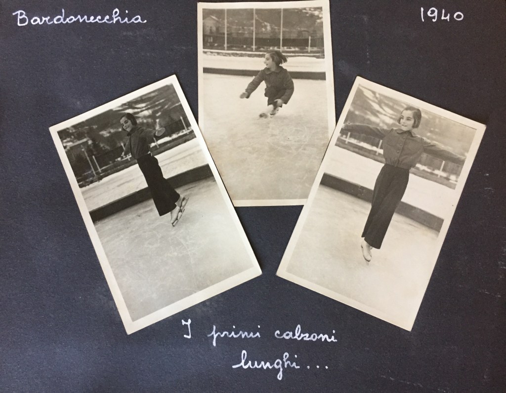 Passiamo quindi a Bardonecchia, dove nel febbraio 1940 (il mese è deducibile dal confronto con ApGr IV.72), a causa del freddo pungente, in allenamento Grazia indossa per la prima volta i pantaloni lunghi, anziché la gonna d’ordinanza: un evento evidentemente importante, per una ragazzina dell’epoca, come ricordato anche dalla pattinatrice stessa nell’intervista del 2019: