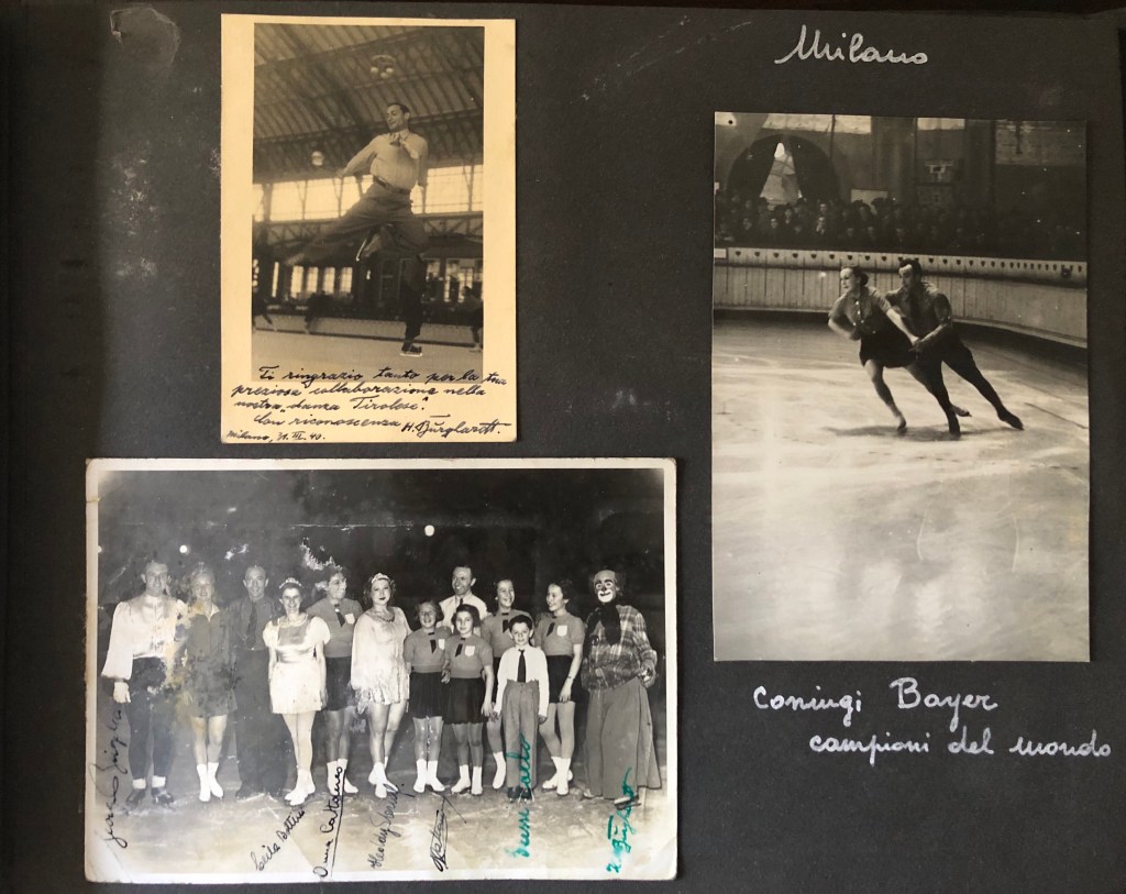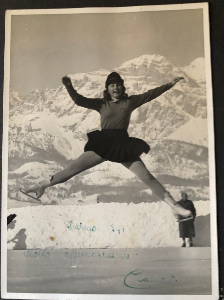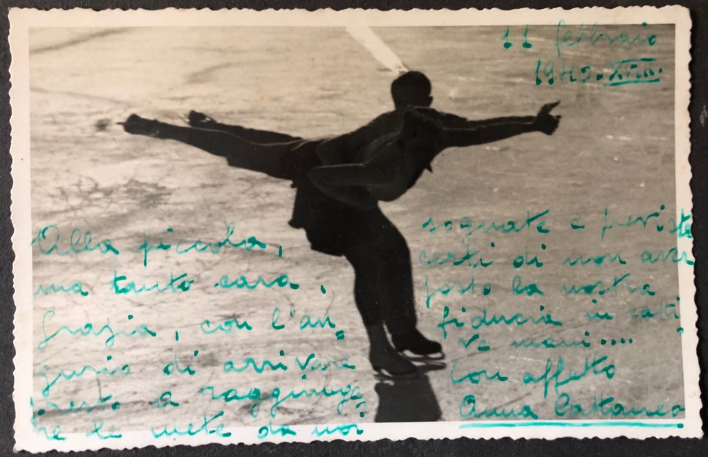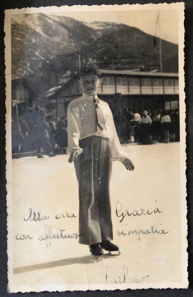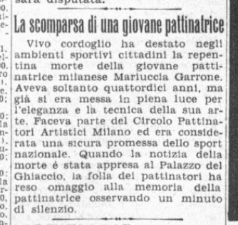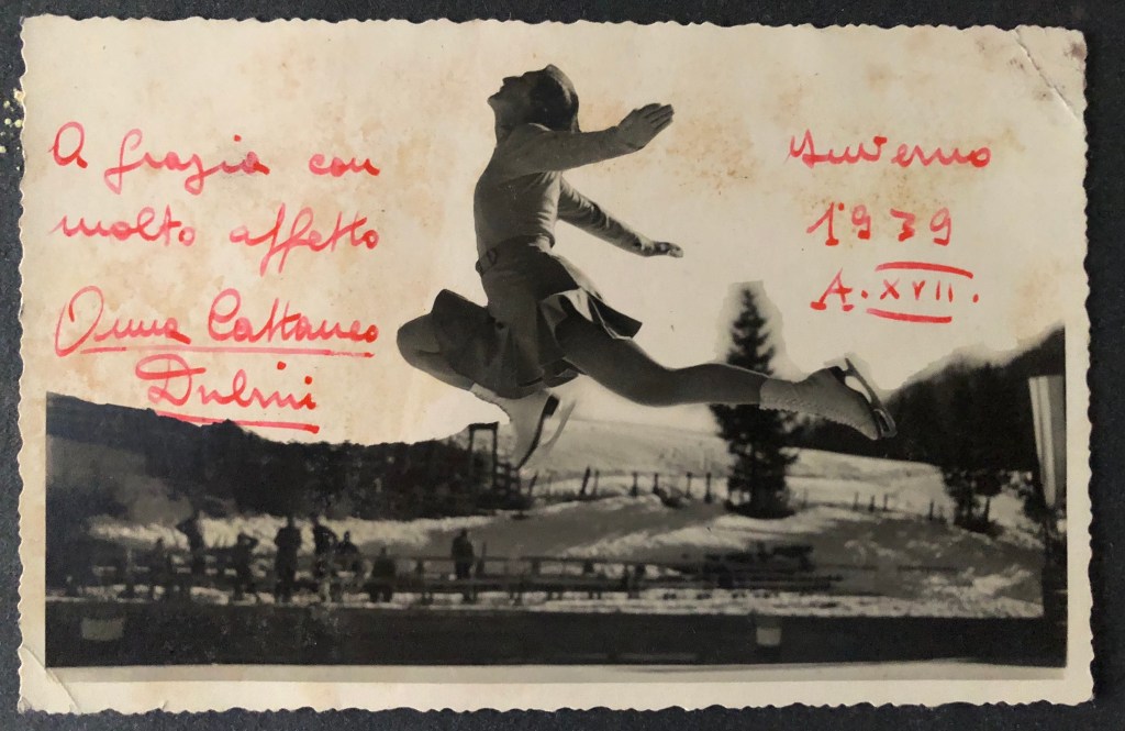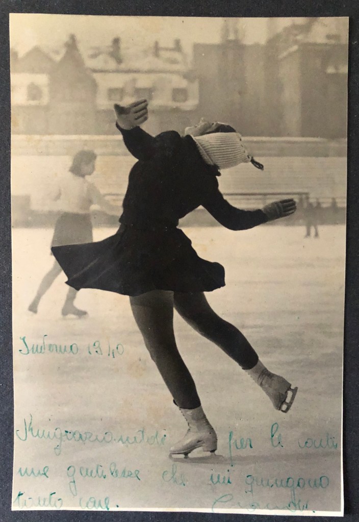 La foto seguente è dedicata a Mariuccia Garrone, una compagna di pattinaggio di Grazia, morta il 10 gennaio 1939, in giovane età (per questo “non ci avrebbe delusi”). In suo onore, nel marzo di quello stesso anno, il Circolo Pattinatori Artistici di Milano istituì la Coppa Garrone.