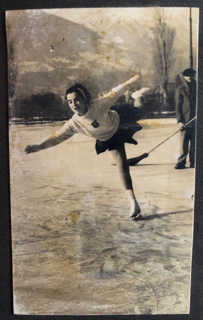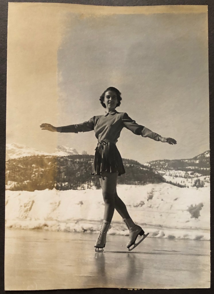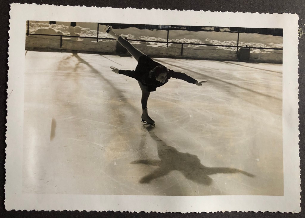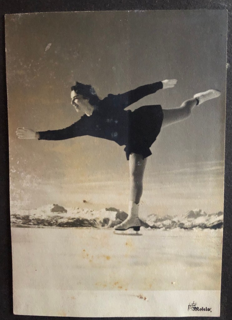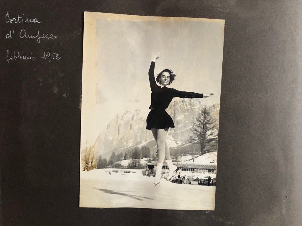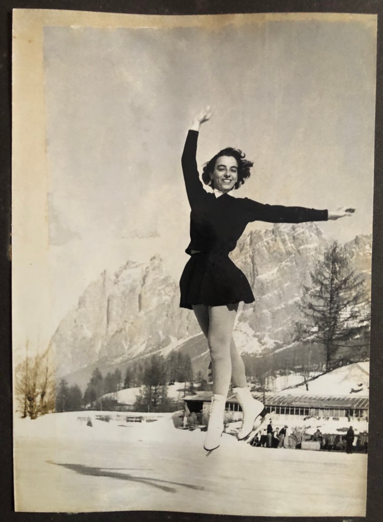 La didascalia della successiva foto ci spiega bene cosa sta succedendo: “Per un documentario sul pattinaggio sto eseguendo con Mirra, Liliana e Didi uno strano “passo” che ci preoccupa un po’, malgrado si cerchi di essere disinvolte”.