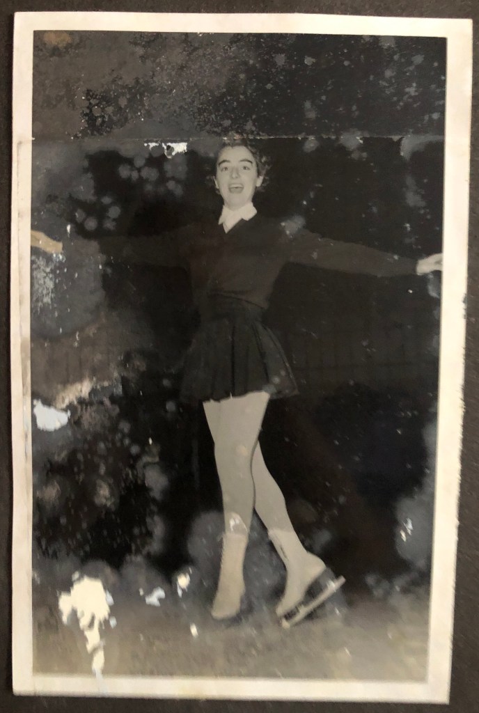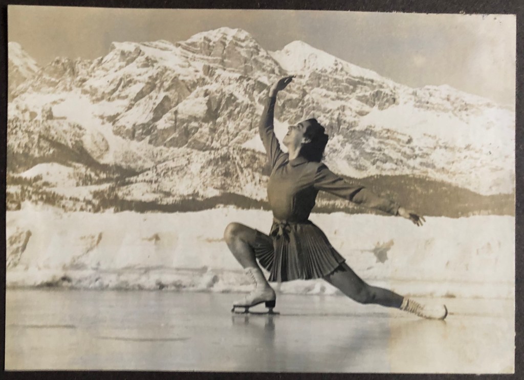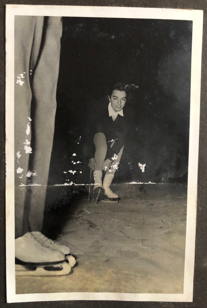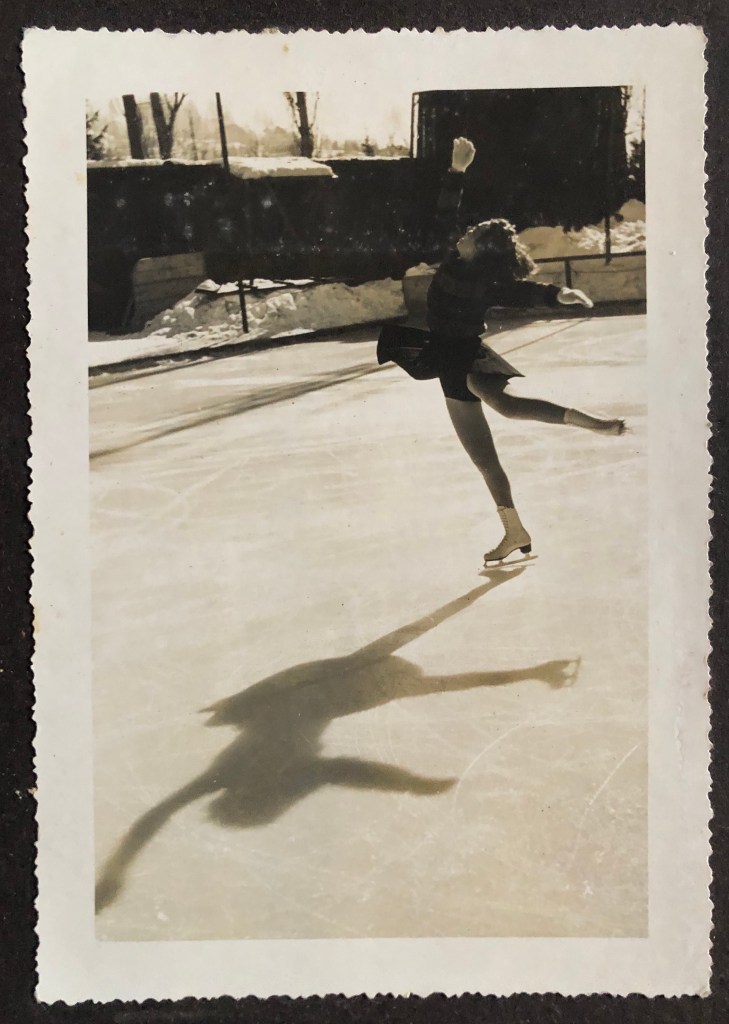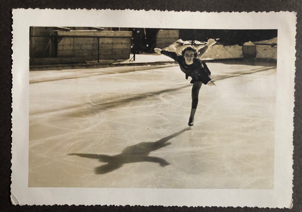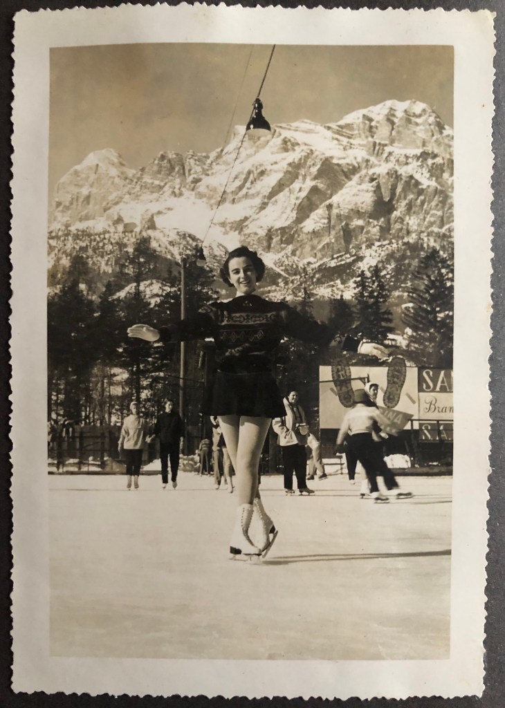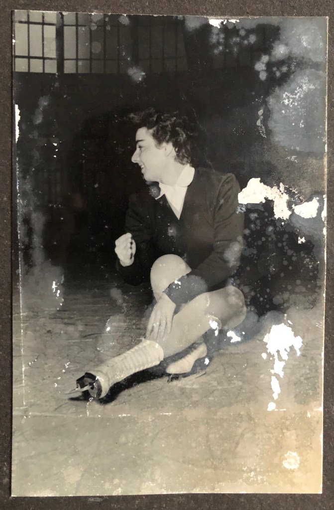 La didascalia della successiva foto ci spiega bene cosa sta succedendo: “Per un documentario sul pattinaggio sto eseguendo con Mirra, Liliana e Didi uno strano “passo” che ci preoccupa un po’, malgrado si cerchi di essere disinvolte”.