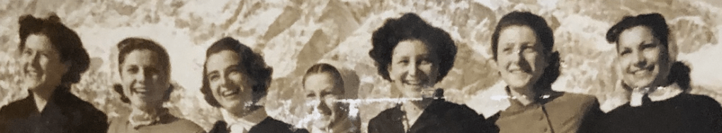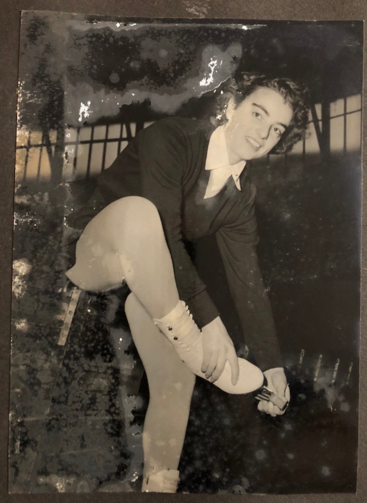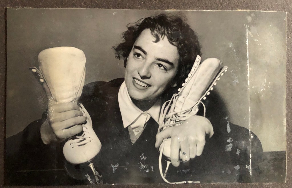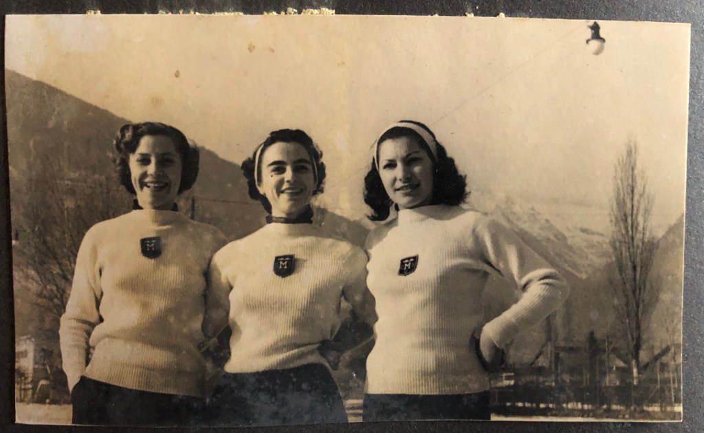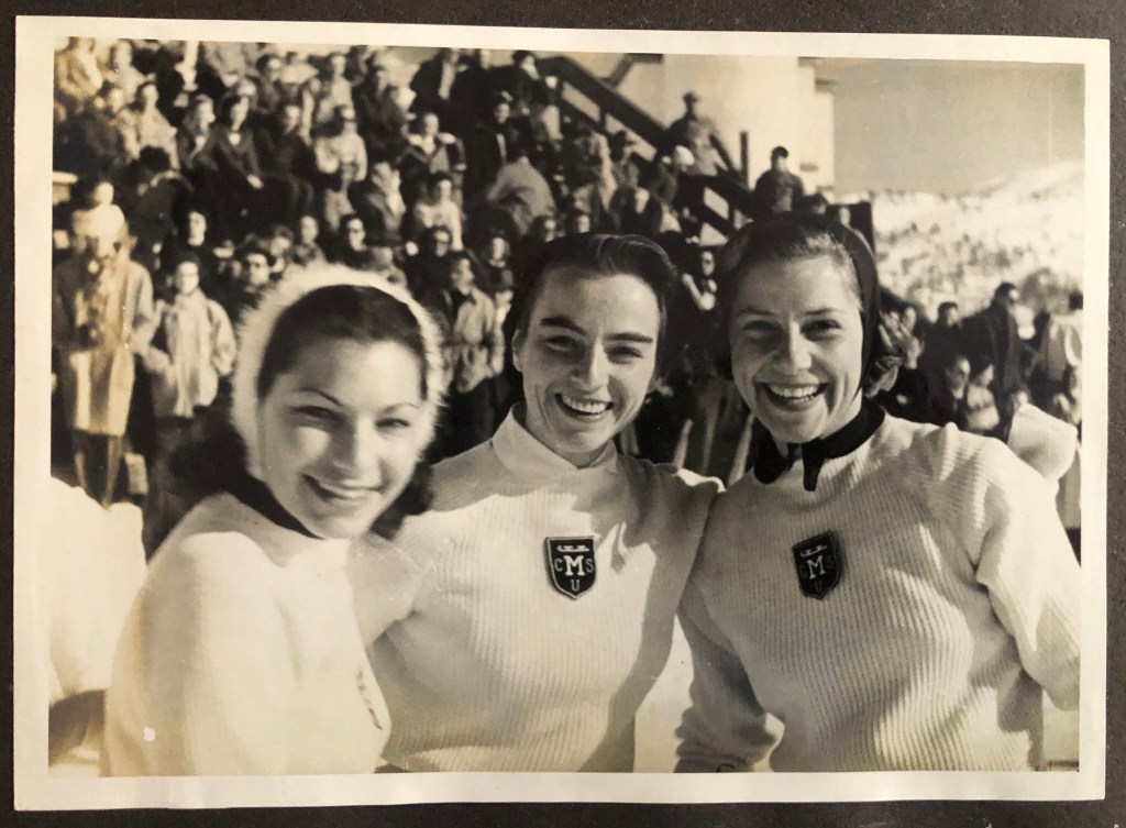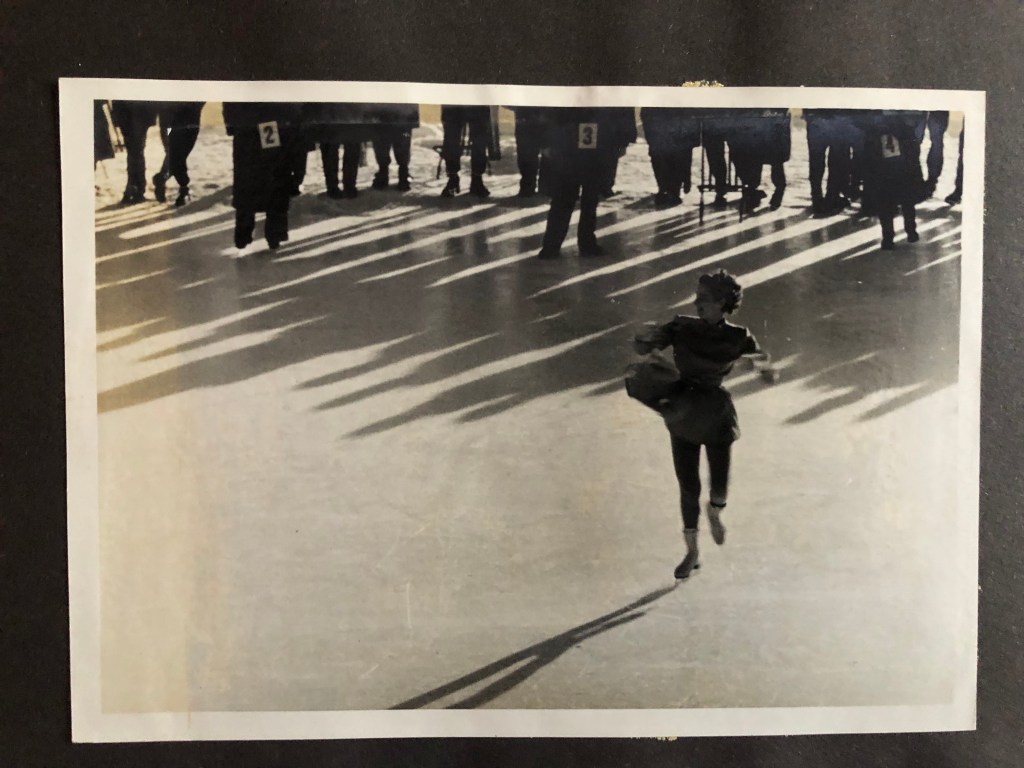 La prima delle due foto immortala 7 pattinatrici milanesi: Sonia Garbato, Liliana Aquilano, Sylvia “Didì” Manzoli, Grazia Barcellona, Manuela Angeli, Franca Tininini e Mirra Aquilano.