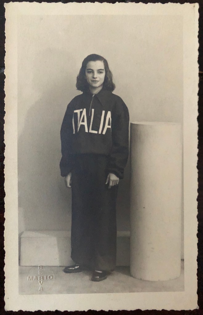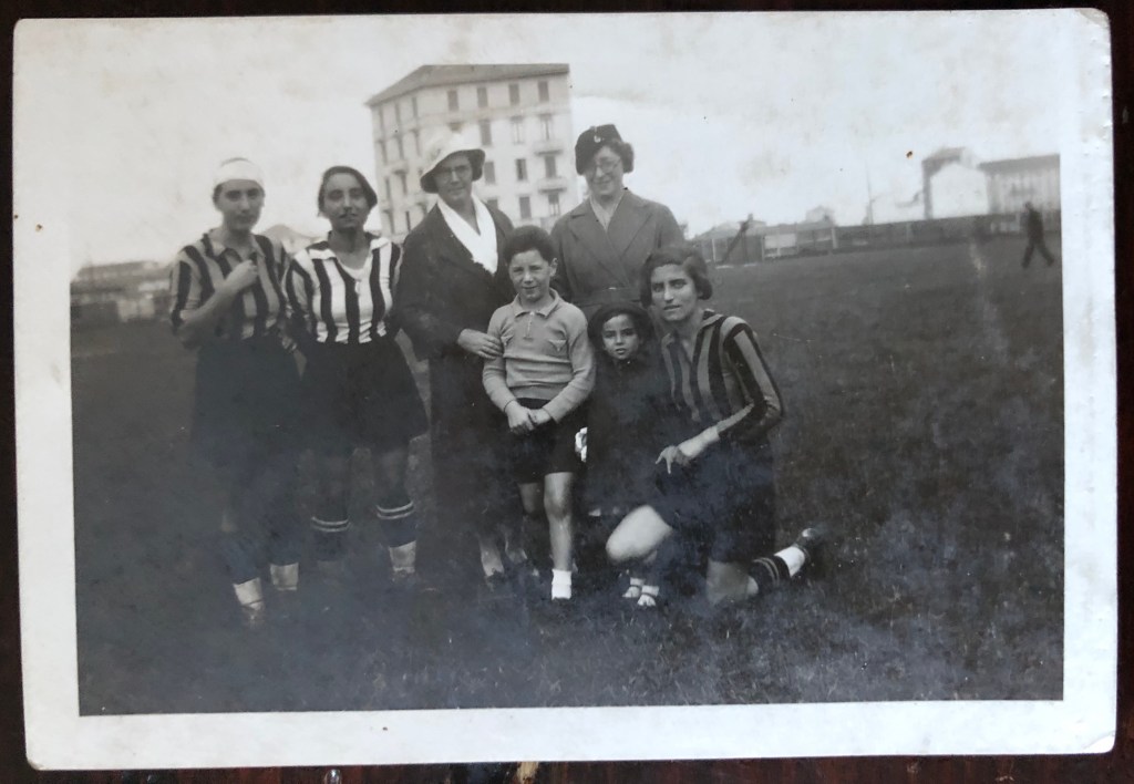 Partiamo con quella che sicuramente è la fotografia più antica: siamo nel 1933, a Milano, e Grazia 4 anni, posa con la mamma e le zie calciatrici. Si tratta di uno scatto già conosciuto, ma qui probabilmente in versione originale, visto che si intravede una porzione di campo a destra non disponibile nelle altre copie di questa foto.