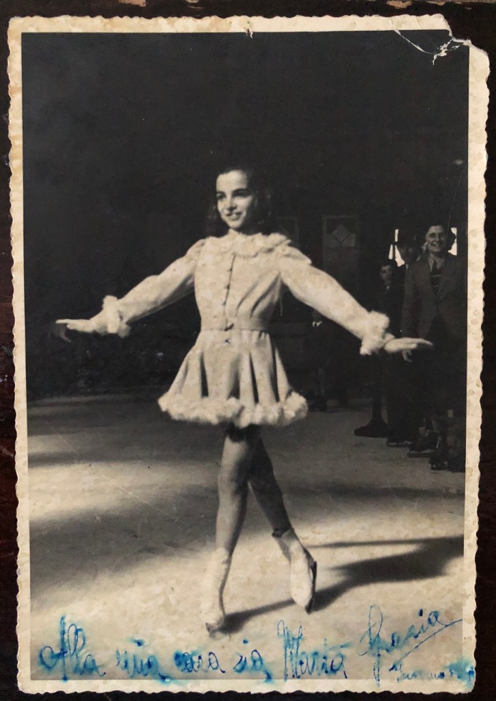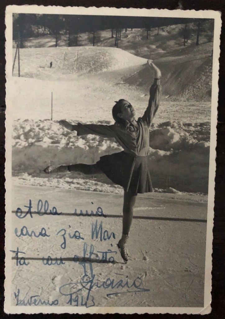 La ventiduesima foto, datata 1943, ritrae una pattinatrice in costume tradizionale, con dedica: “La cara Grazia[.] tanta fortuna! Va[…] Su[…]eman | 1943”. Potrebbe trattarsi di una pattinatrice straniera, austriaca o tedesca, più grande di Grazia.