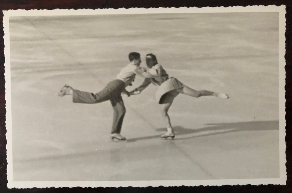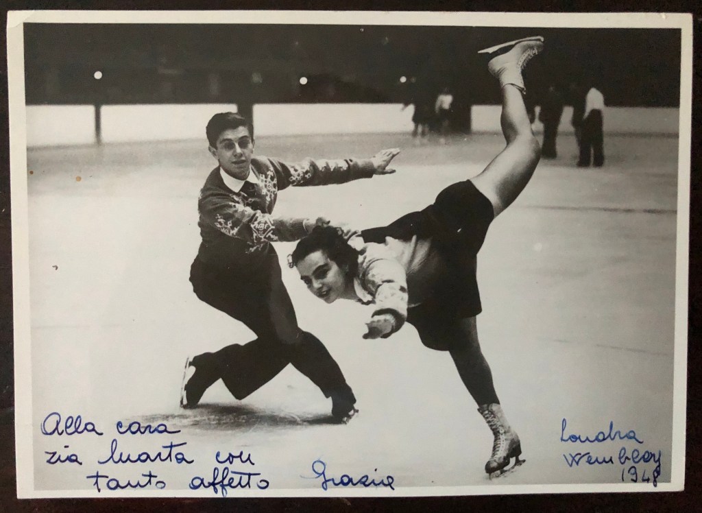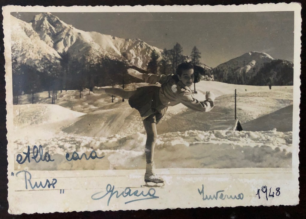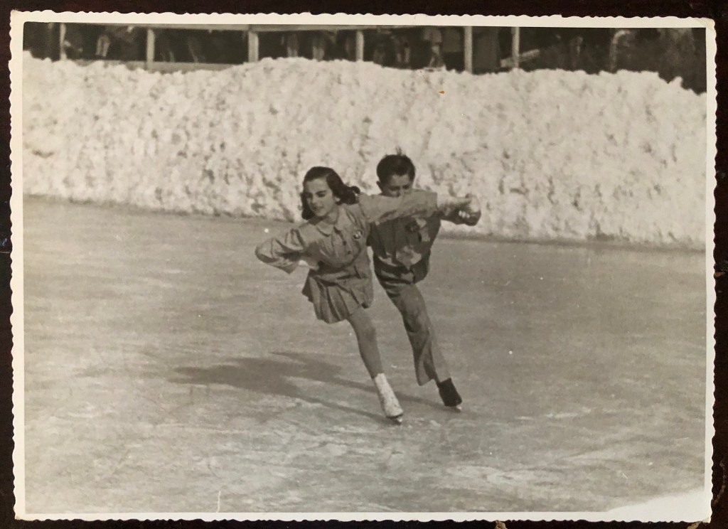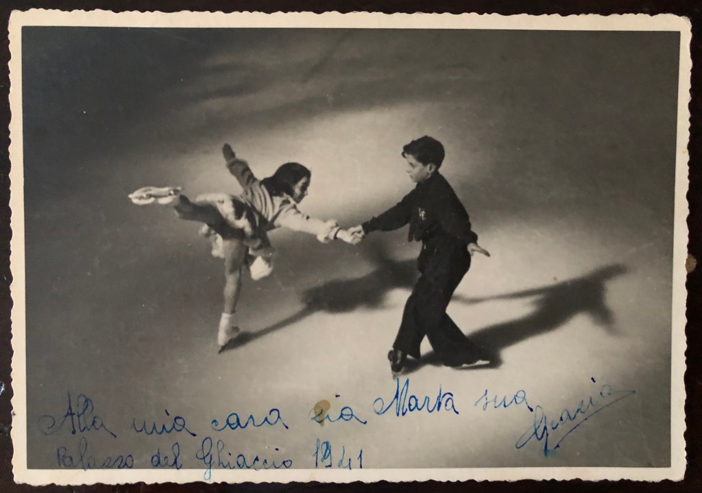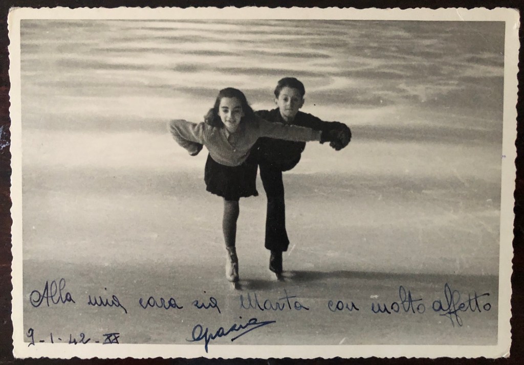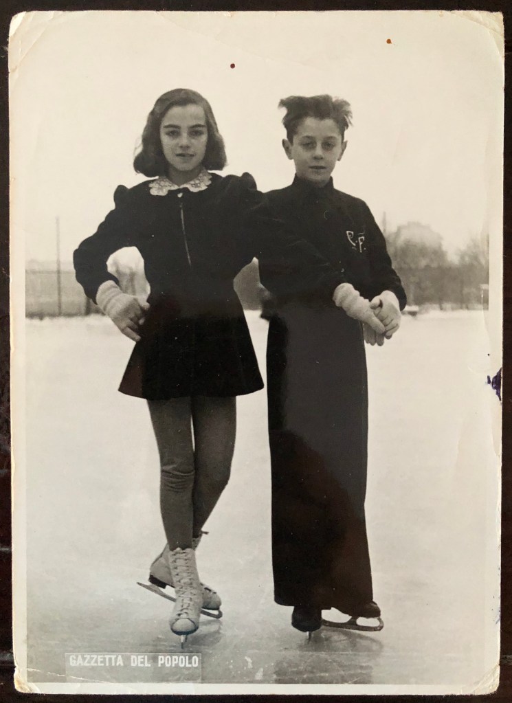 Nelle due successive fotografie, scattate nella stessa occasione, vediamo prima Grazia e poi Giacomo cimentarsi sui pattini al Palazzo del Ghiaccio: