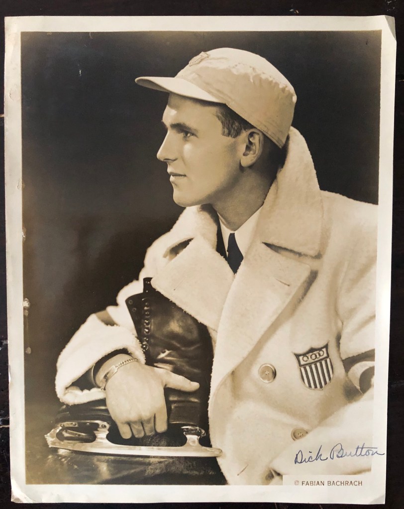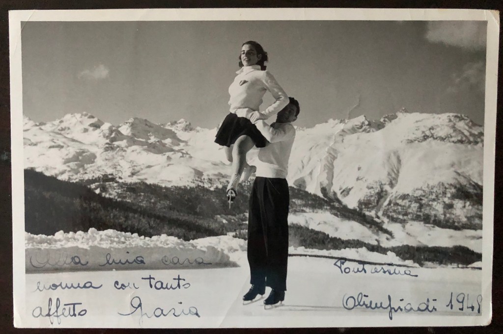 Dedica ad Antonietta Salvarani Boccalini: “Alla mia cara nonna con tanto affetto | Grazia | Pontresina | Olimpiadi 1948”.