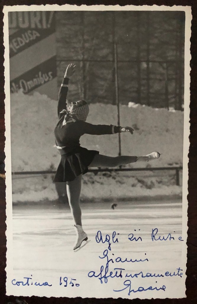 Dedica manoscritta: “Campionato Italiano | 1950 | Cortina d’Ampezzo | Alla mia cara mamma con profondo affetto | Grazia”.