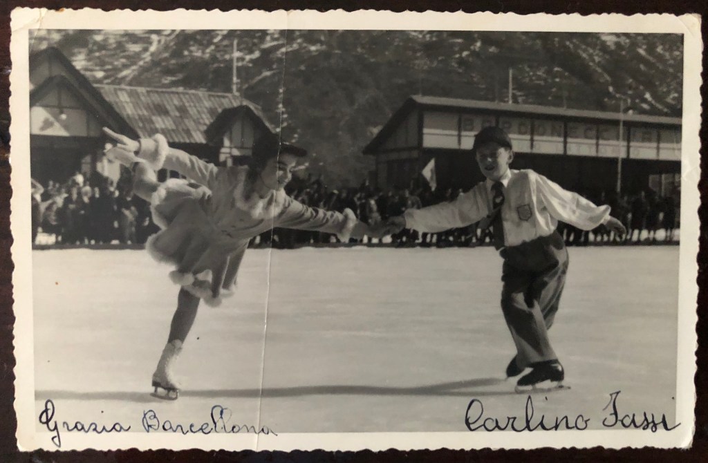 Ci sono un po’ di fotografie scattate a Pontresina nel 1948, in occasione del ritiro preolimpionico, in cui Grazia e Carlo pattinano con il maglione bianco della Nazionale. Per la maggior parte di tratta di doppioni, ma c’è anche qualche fotografia non inclusa nel secondo album.