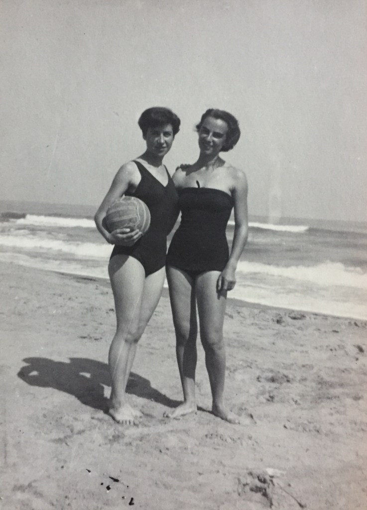 Le tre foto 1579-1581, non datate, ritraggono Grazia Barcellona in spiaggia, in una in compagna di un’amica, quasi sicuramente la pattinatrice Franca Re.