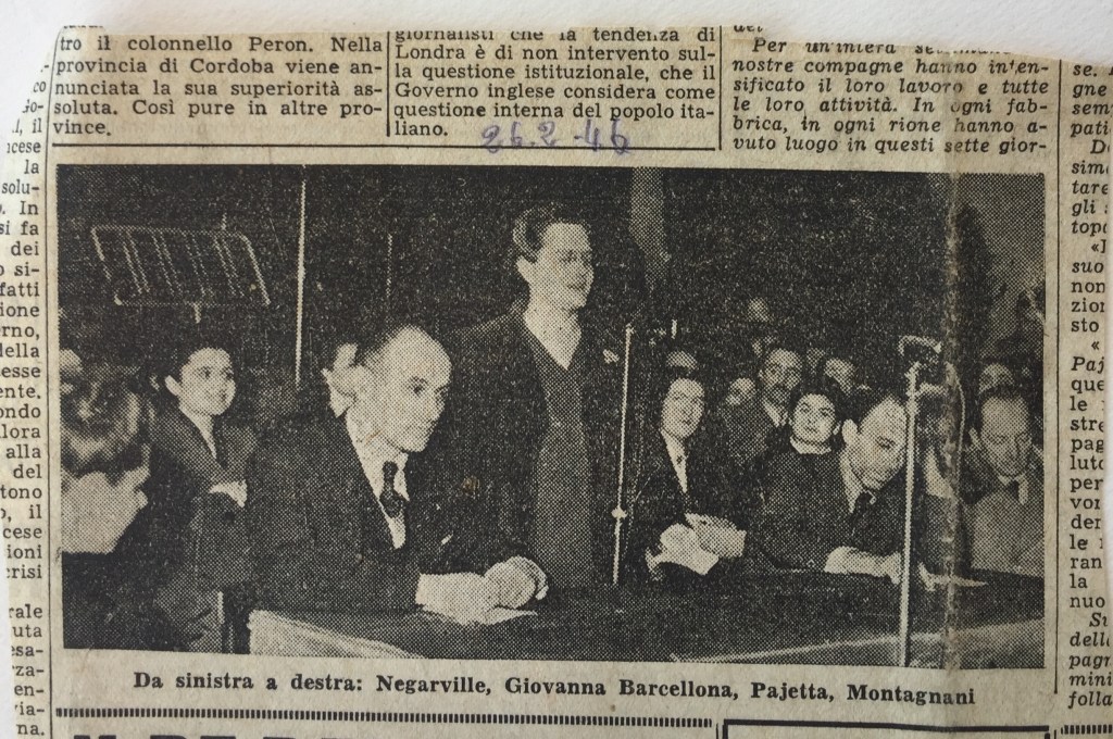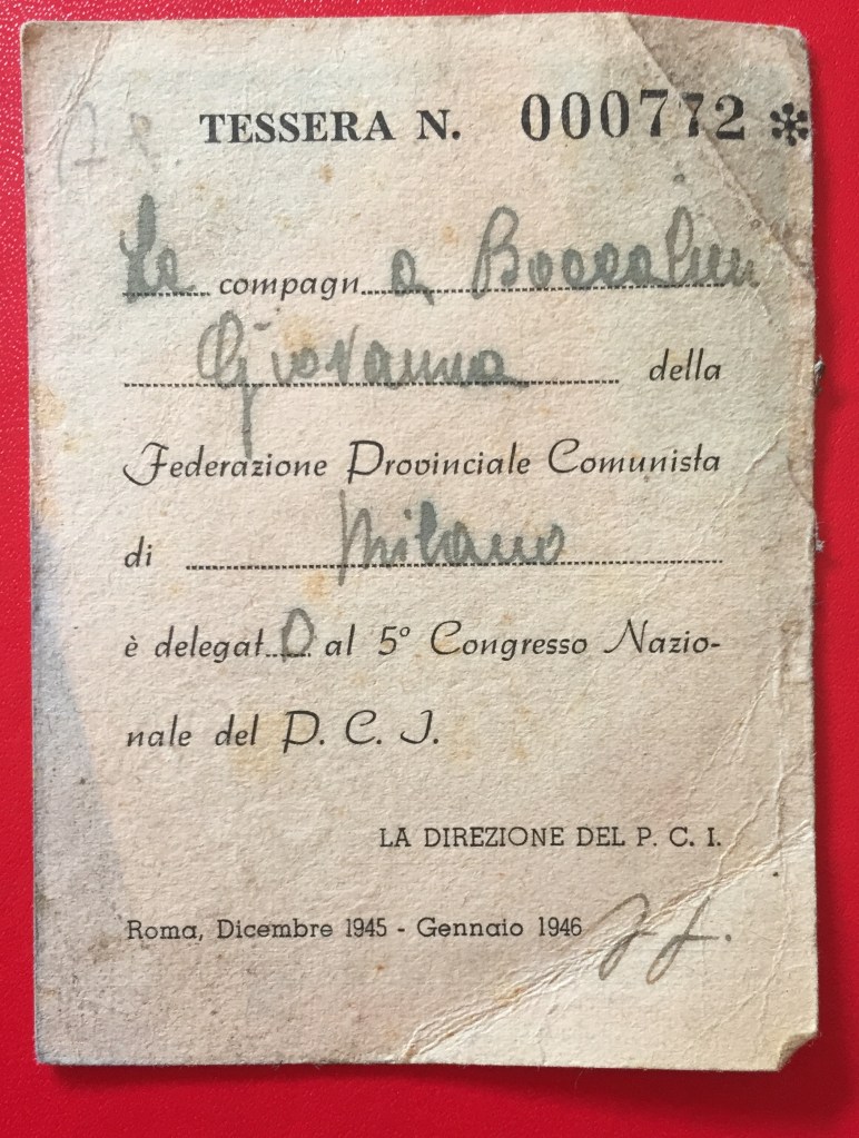 Nel frattempo, ovviamente, Giovanna partecipava alla vita del proprio partito. Alla fine del 1945 aveva partecipato al V Congresso Nazionale, svoltosi all’Università di Roma: bisognava lavorare assieme per saldare il partito che aveva lavorato nell’Italia liberata con quello che aveva combattuto nell’Italia occupata dalle forze nazi-fasciste.