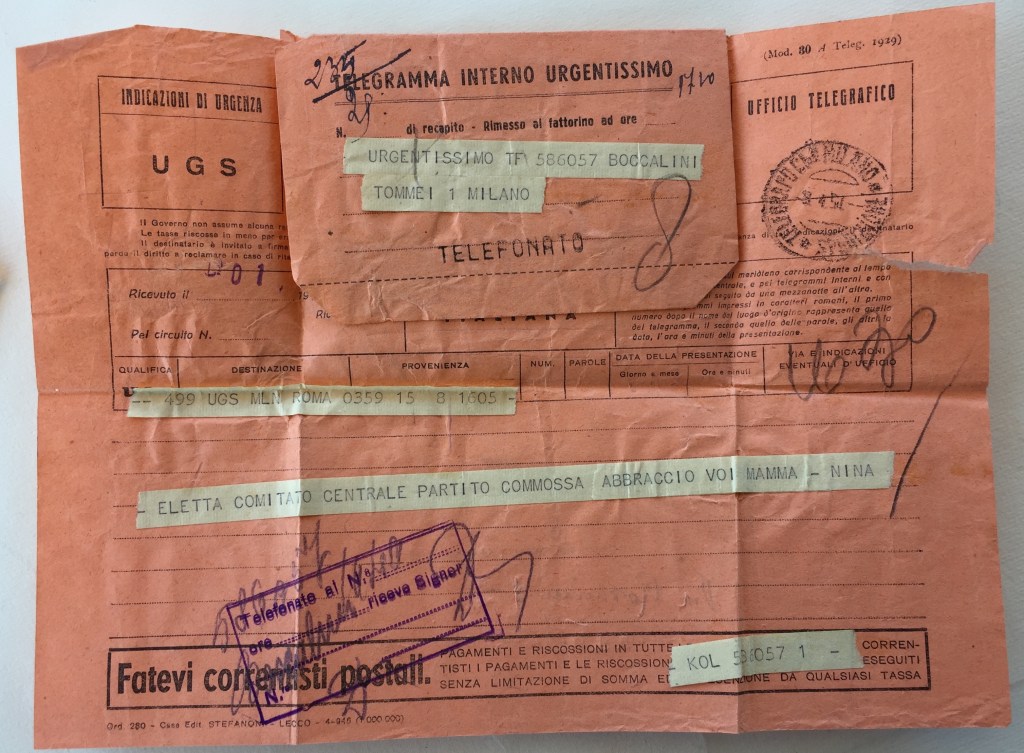 Nel 1951, Giovanna verrà eletta nel Comitato Centrale del P.C.I., come annuncia ella stessa in un telegramma alla madre e alla sorella Marta: