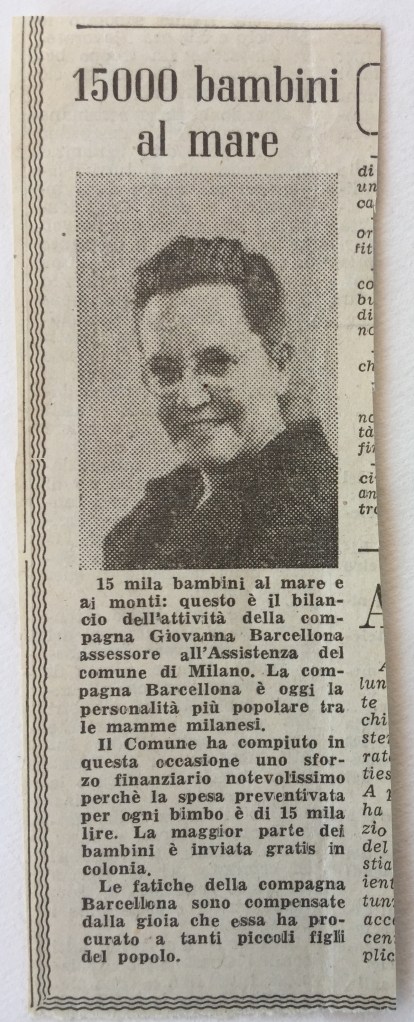 Durante la giunta Greppi (la prima eletta, con le appena citate elezioni comunalei del 1946) Giovanna ricoprì anche l’incarico di Assessora (all’epoca, “assessore”) per l’Assistenza all’Infanzia.