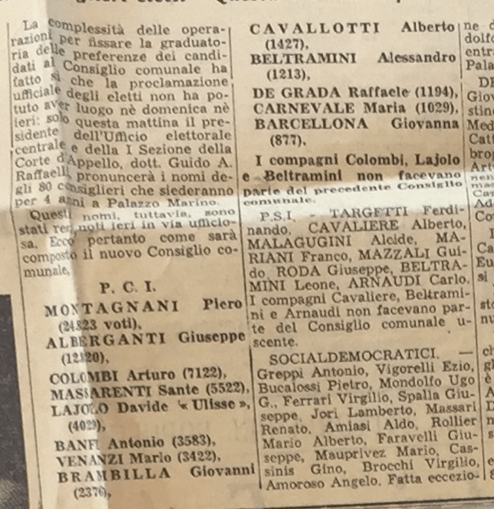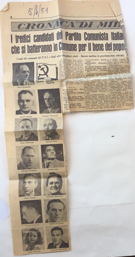 Giovanna venne riconfermata alle successive elezioni comunali del 1951, ultima fra gli 8 eletti del P.C.I., con 877 preferenze: